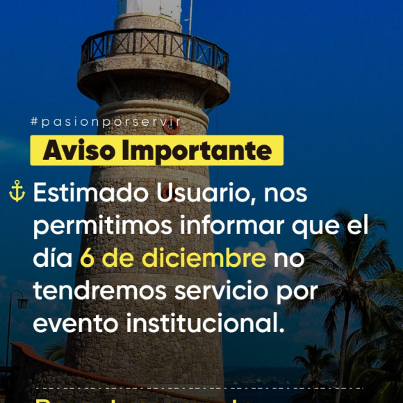 Nos permitimos informar que el dia 06 de Diciembre No tendremos servicio por Evento Institucional.