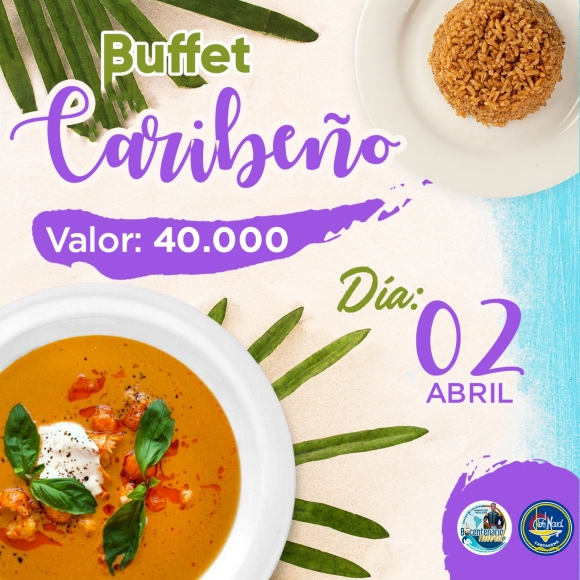 ACTIVIDADES BUFFET DOMINICAL Menú:Ensalada de Aguacate, Tomate, Pepino y Lechuga.Sopa Caribeña.Arroz con Coco Negrito.Patacones.Carne de Res en Salsa Criolla.Croquetas de Robalo.Pechuga en Salsa de Coco. << Ver todas las actividades