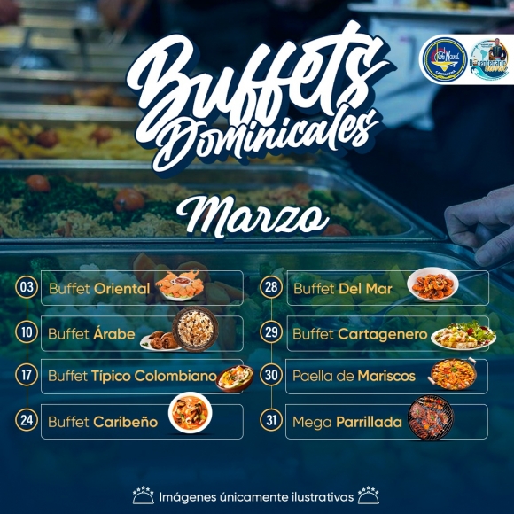 ¡Descubre los deliciosos buffets que tenemos preparados para ti durante todo el mes de marzo! Deléitate con una variedad de platos exquisitos que satisfarán todos tus antojos culinarios. Desde opciones tradicionales hasta creaciones innovadoras, nuestros buffets ofrecen una experiencia gastronómica única que no querrás perderte. ¡Ven y únete a nosotros para disfrutar de una experiencia culinaria inolvidable!