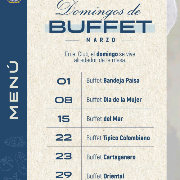 Cada domingo tenemos un buffet único y delicioso para que te programes, pruebes nuevos sabores y compartas con los tuyos.
