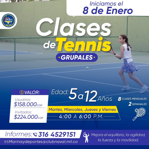 Iniciamos el 8 de enero hasta el 8 de febrero Para mayores informes:marinaydeportes@clubnaval.mil.co 316 452 9151