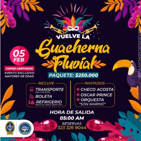 El Club Naval De Oficiales te lleva a Barranquilla! Gózate la Guacherna Fluvial con nosotros el 05 de febrero por solo $250.000